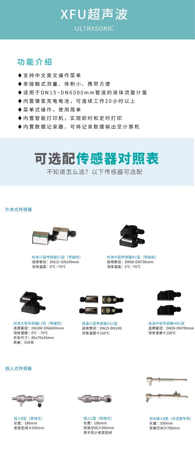 便攜式超聲波是以“速度差法”為原理,測量圓管內液體流量的儀表.它采用了先進的多脈沖技術、信號數字化處理技術及糾錯技術,使流量儀表更能適應工業現場的環境,計量更方便、經濟、準確.產品達到先進水平,可廣泛應用于石油、化工、冶金、電力、給排水等領域.
